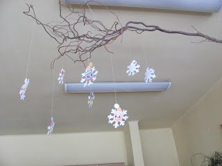 Nasza sala wygląda teraz zimowo i świątecznie. Dzieci wykonały mnóstwo prac plastycznych różnymi technikami, z których spora część zdobi teraz świetlicę (część prac świetliczaki zabrały też do domu - np. choinki origami z gwiazdką pięcioramienną na czubku). Popatrzcie zresztą sami: